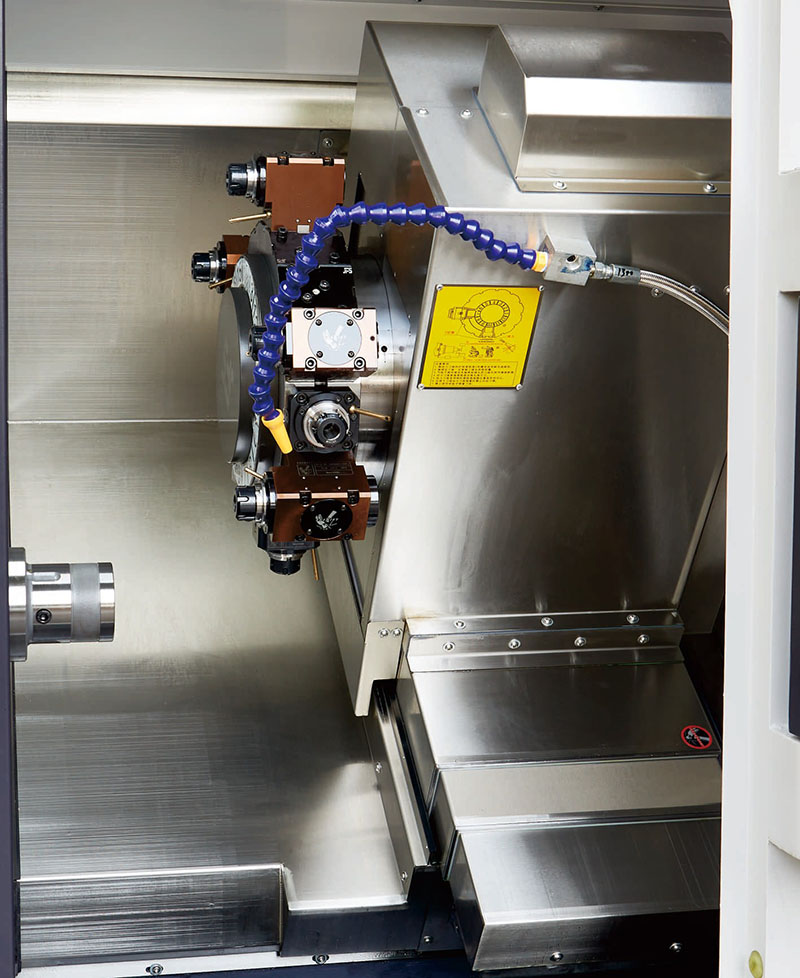 Bilang karagdagan, ang kagamitan ay mayroon ding mga praktikal na highlight: 0 ° Power Head ay maaaring makamit ang matatag na operasyon ng 8000 rpm, 90 ° na lakas ng ulo na na -rate ang bilis ng pagtatrabaho ng 6500 rpm; Ang may -hawak ng tool ay nagpatibay ng disenyo ng paghahatid ng walang gear na module, tinanggal ang impluwensya ng mapagkukunan ng init mula sa ugat, na maaaring epektibong ginagarantiyahan ang katumpakan ng machining; Ang mga pag -andar ng paggiling at pag -on ay isinama, na madaling matugunan ang mga kinakailangan ng machining ng mga kumplikadong materyales tulad ng hindi kinakalawang na asero, titanium alloy at carbon steel; Ang sistema ng pag -alis ng chip ay nagpatibay ng bahagi + pabalik na integrated na disenyo, nababaluktot na mode ng pag -install, ay maaaring hindi sinasadyang napili ayon sa aktwal na mga kondisyon sa pagtatrabaho.